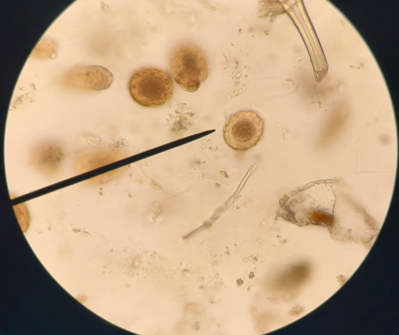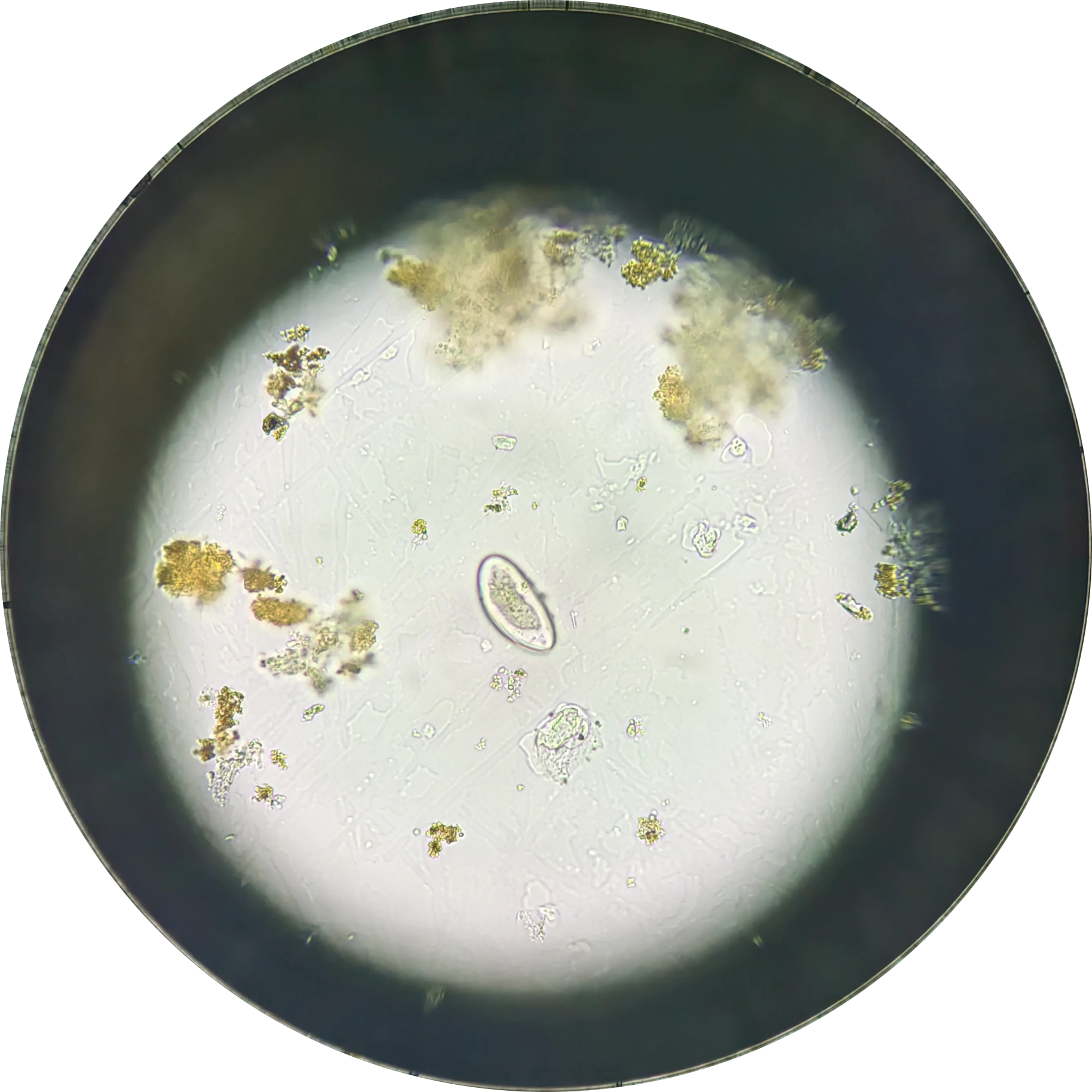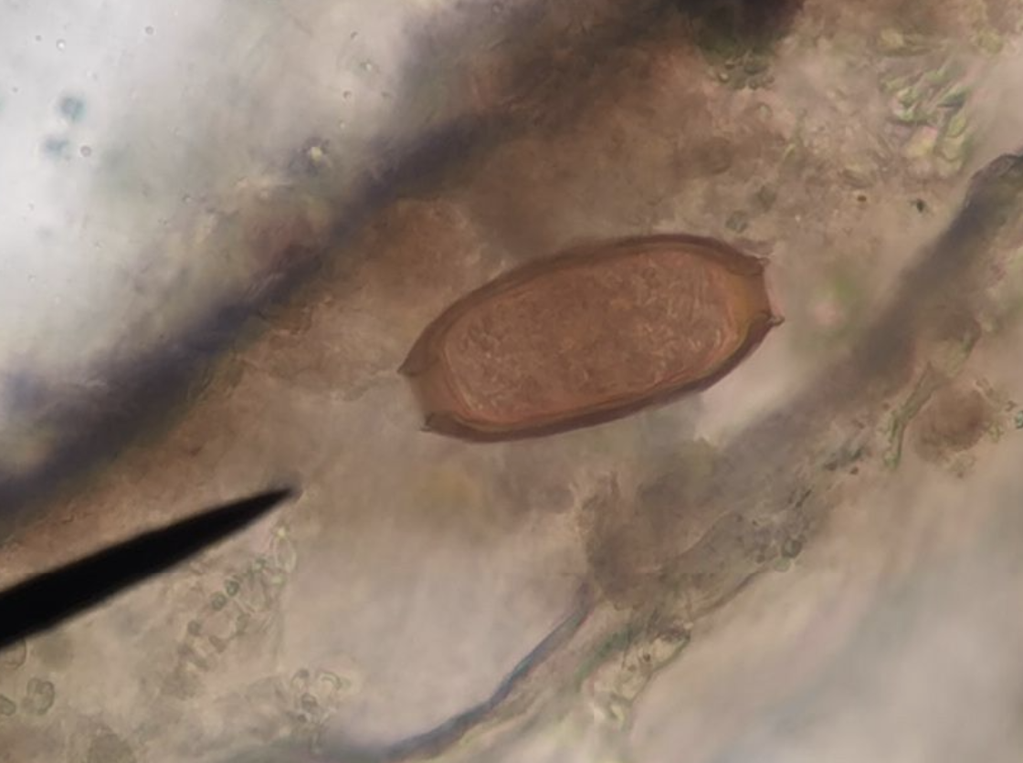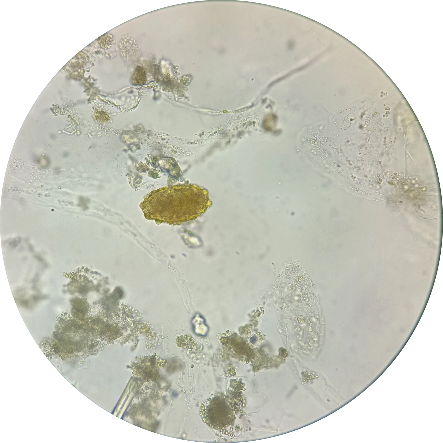 虫卵呈纺锤形或腰鼓形, 大小(50~54)μm x (22~23)μm,棕黄色, 卵壳较厚,两端各有一透明塞状突起。虫卵随粪便排出时,卵内有1个尚未分裂的细胞。